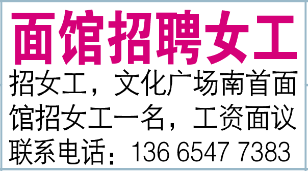 面馆招女工一名