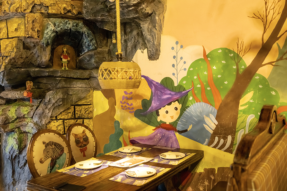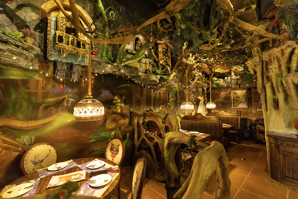 欢迎来到藏在童话故事里的魔法餐厅,报开门仿修进入魔法世界,城堡、树酱、绿植、星星灯……不小心闯入了爱丽丝的梦游仙境,神秘感十足,有一种绿开仙踪般的浪漫。
