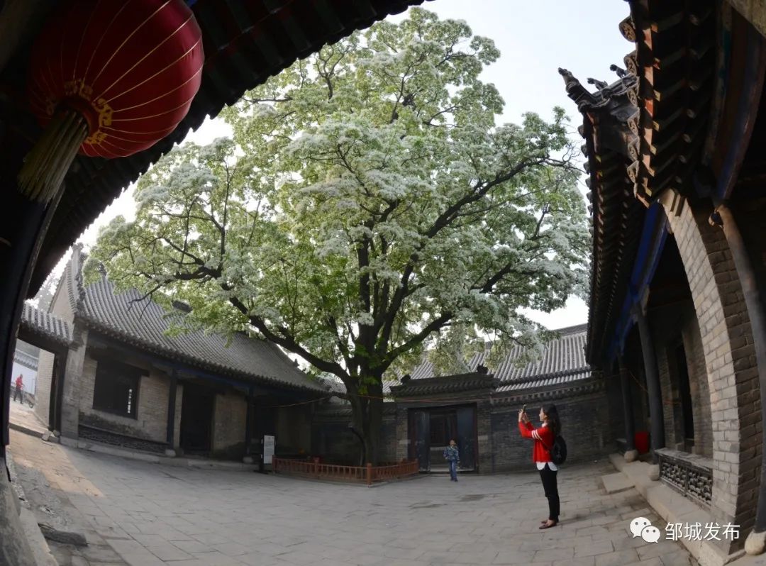 近日孟府院内,有着三百多年历史的两棵流苏树悄然开花,洁白的流苏花开满树冠,团团簇簇,如雪如云,随风浮动,宛如流苏,花香四溢,给古老的庭院更添一份诗情画意。
